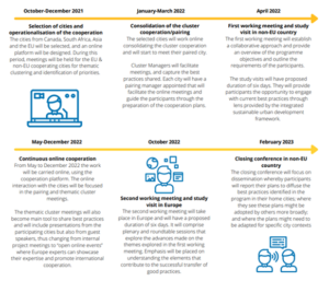 The project seeks to develop urban cooperation and foment city-to-city partnerships between EU and non-EU local authorities in Canada, South Africa, Singapore, South Korea, Taiwan and Hong Kong. The goal is to facilitate the sharing of information and transfer of good practices and lessons learned on sustainable and integrated urban practices and policies between participating cities, in order to contribute to a learning process based on concrete examples and best practices, as well as facilitate business cooperation and local economic development, including low-carbon development. International responses and experiences will be pooled for the benefit of participating cities on the challenges faced by cities worldwide on the themes of 1) circular economy, 2) air quality, 3) energy transition, and 4) integration of migration of migrants and refugees.