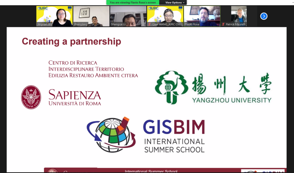 Representatives from Sapienza University of Rome and Yangzhou University met online to discuss the continuing cooperation on the Online Summer School GIS-BIM for a Digital Integrated Design, focusing on the joint summer school and the long-term academic collaboration.