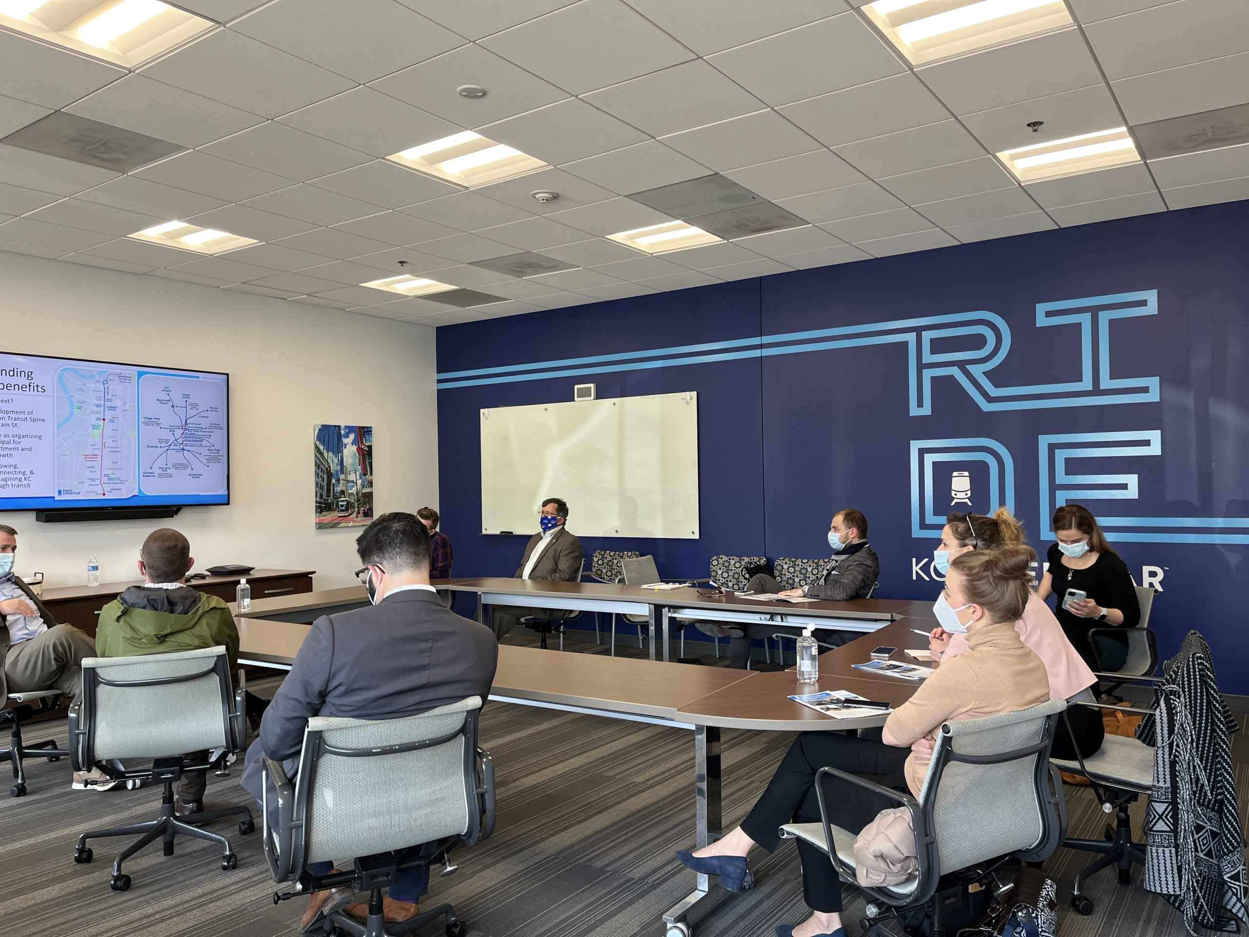 First, they rode the KCstreetcar and visited their headquarters. Afterward, they traveled by bus and toured the Kansas City Area Transportation Authority (KCATA) offices, where delegates learned about new technology to move toward alternative energy sources and improve the operations of the public transport system that works across two states.