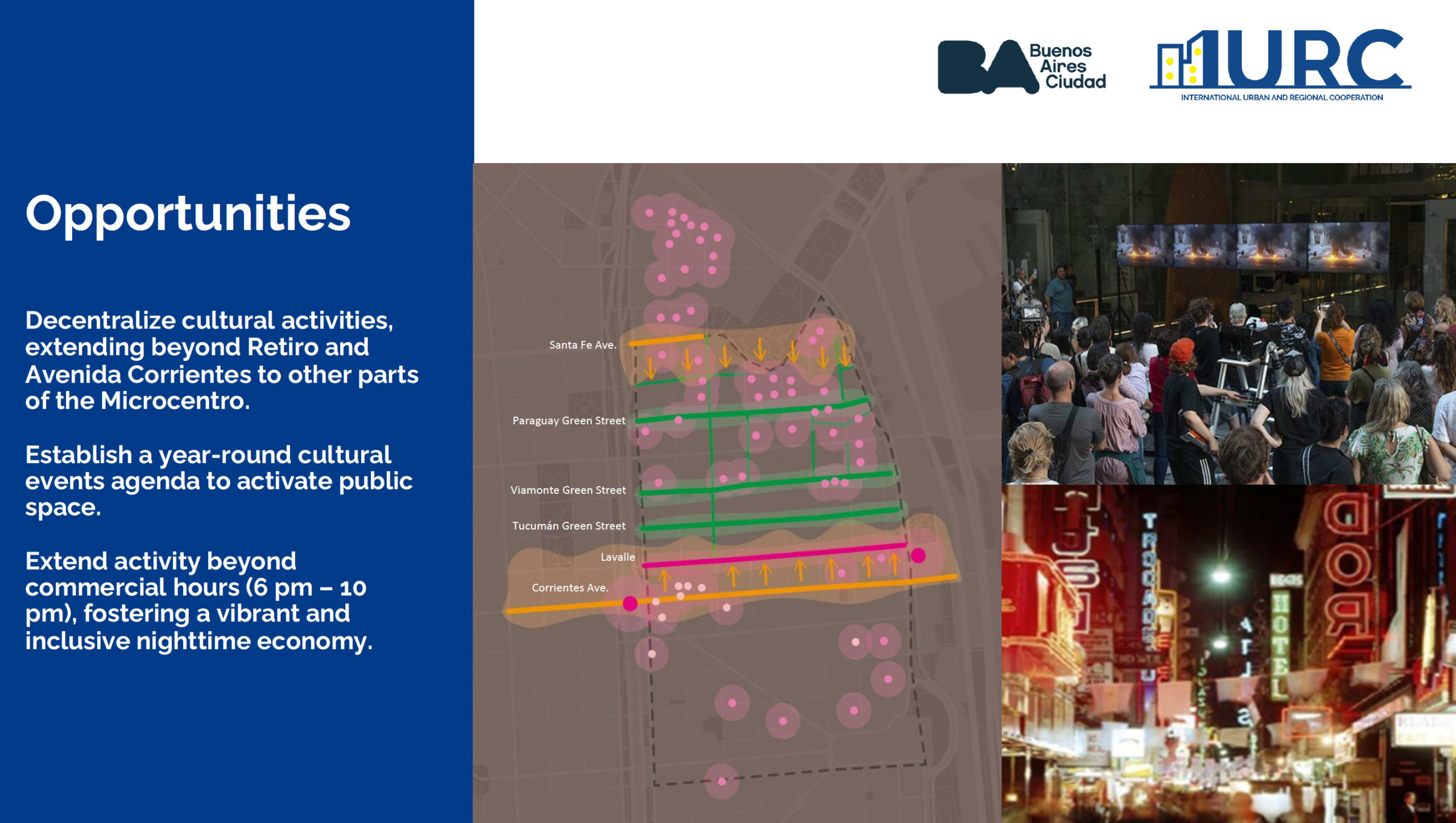 Juan Vacas described Buenos Aires’ strategy to reinvigorate its city center after COVID-19, with a focus on pedestrianization, tourism, and nightlife. The goal is to attract both younger and senior populations, making public spaces accessible and inclusive.
