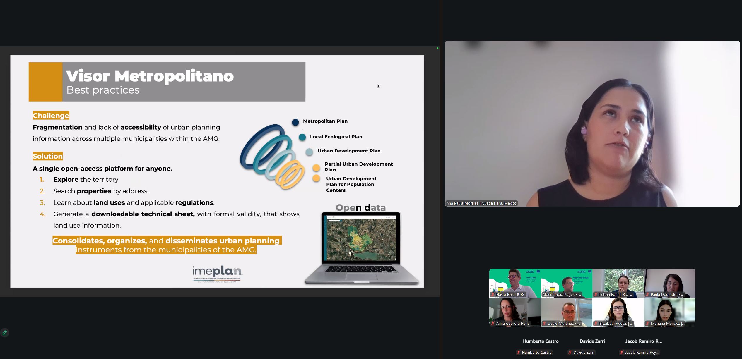 Ana Paula Morales presented the Metropolitan Area of Guadalajara (Mexico), a city of over five million people with a unique governance model. She shared three best practices: