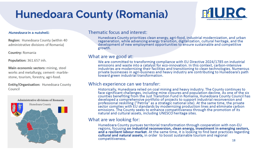 Hunedoara County (Romania) – Iulian Iovan and Bianca Barabas shared their efforts to shift from coal mining to sustainable energy and tourism. The redevelopment of the Petrila mining site is a flagship project of their transition strategy.