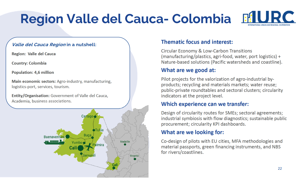 Valle del Cauca (Colombia) – Nasly Vidales outlined efforts to integrate circular economy principles and a low-carbon transition in both manufacturing and agri-food industries, while seeking guidance on governance structures.