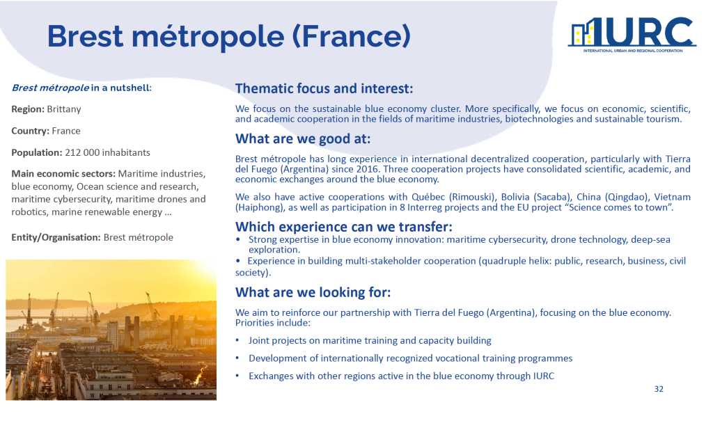 Brest Métropole (France) – Anna Binard and Julie Nuyts emphasized Brest’s maritime research leadership and its cooperation with Tierra del Fuego.