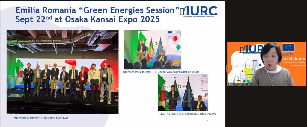 Ryoko Nakano (IURC Japan Team) followed with a presentation on Osaka Prefecture, detailing its position as Japan’s second-largest economic hub and its ambitious strategy for fostering clean energy, life sciences, and artificial intelligence.