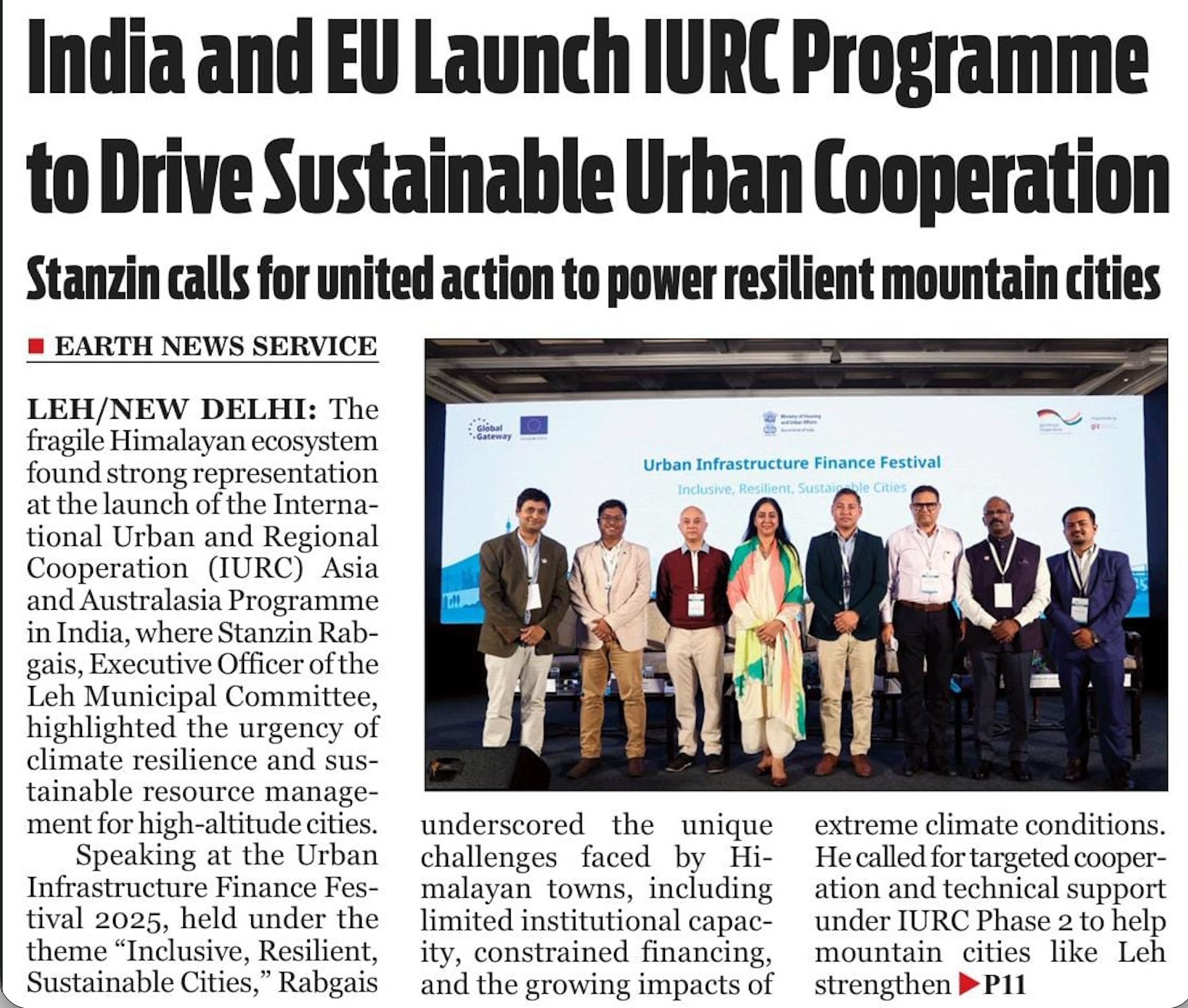 Following its official launch in New Delhi during the Urban Infrastructure Finance Festival 2025, the International Urban and Regional Cooperation (IURC) Programme has been featured in multiple Indian newspapers, including The Earth News (Ladakh Daily) and Dainik Bhaskar Hindi.