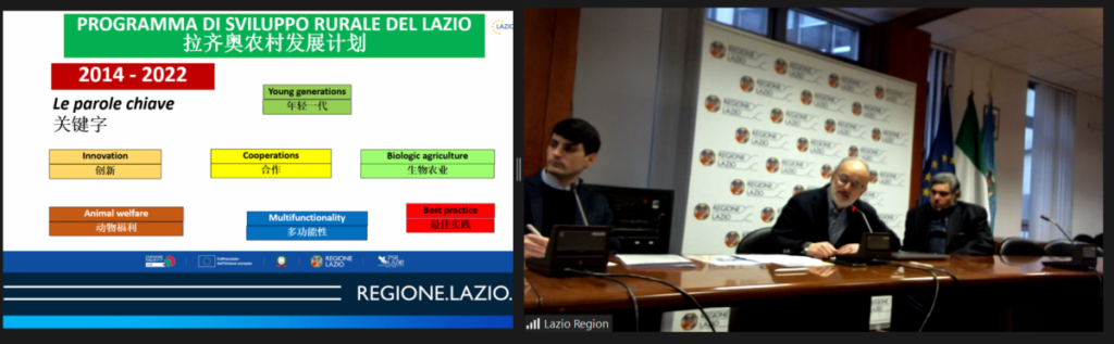 2023年1月31日,在IURC中国案例地区郑州与意大利拉齐奥大区签署合作备忘录后,双方举行了第一季度工作会议,深入了解拉齐奥大区和郑州的农业发展情况。拉齐奥大区农业农村厅推广和市场工具部门负责人Amadio Lancia先生首先发言,他介绍了拉齐奥大区可持续和创新农业的发展背景,重点强调了鼓励年轻一代参与的项目。