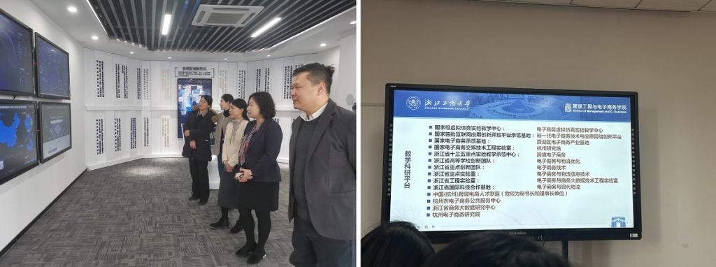 在杭期间,项目办公室先后走访了中国(浙江)自由贸易试验区、浙江工商大学跨境电商学院、浙江金融职业学院、阿里巴巴海外业务总部等机构,以及卧兔网络科技、三星羽绒、汉声教育等跨境电商领域的代表企业,并与杭州市发改委、市商务局、市外办、浙江理工大学、浙江大学城市学院、杭州跨境百人会等进行了深入交流。